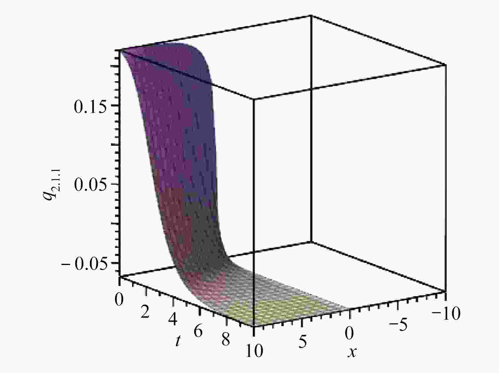 ${q}_{2.1.1}$ ($ \lambda = 3,{\kern 1pt} \mu = 2,{\kern 1pt} K = 1,{\kern 1pt} {\kern 1pt} v = 1,{\kern 1pt} {\kern 1pt} \beta = - 1,{\kern 1pt} $ $c = 1,{\kern 1pt} {\kern 1pt} s = - 15,{\kern 1pt} {\kern 1pt} \alpha = {1}/{2}$ )图 2