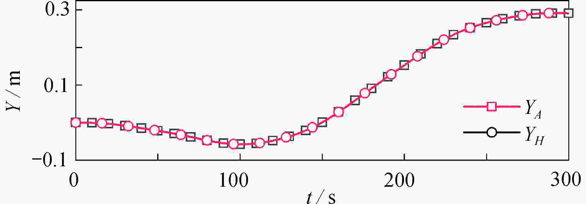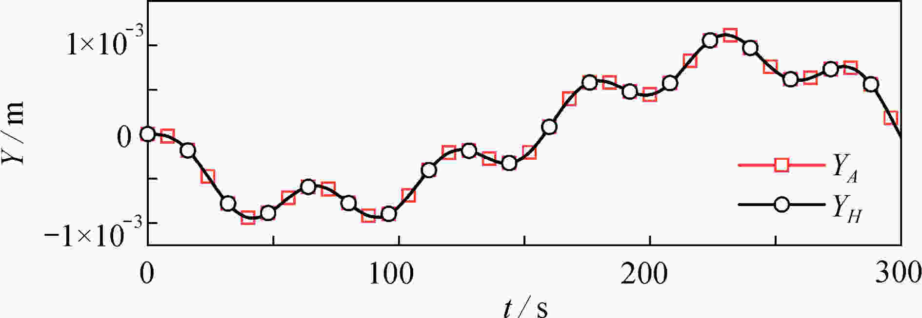 图  8  主结构和待组装结构在夹持点处的$Y$方向位移(共线安装)
