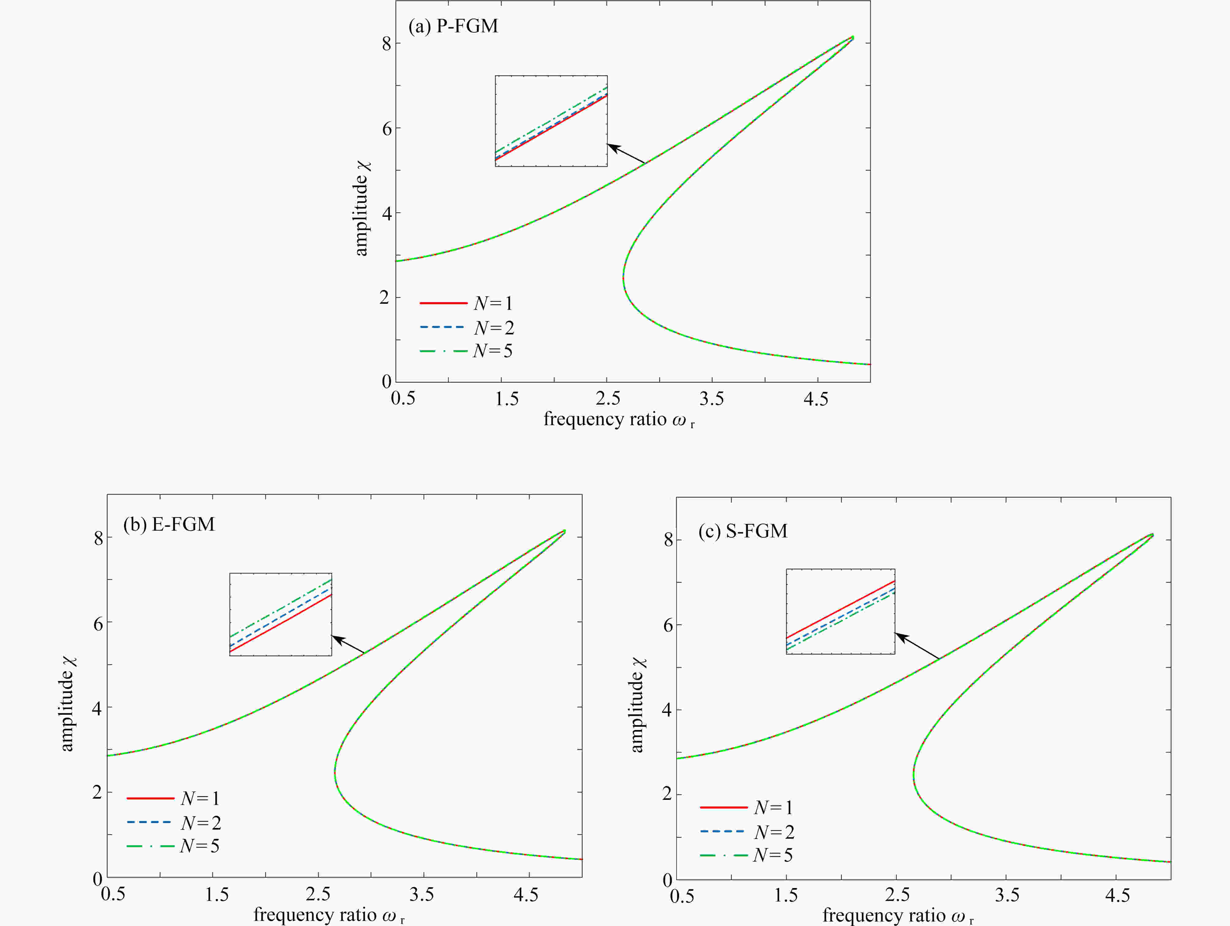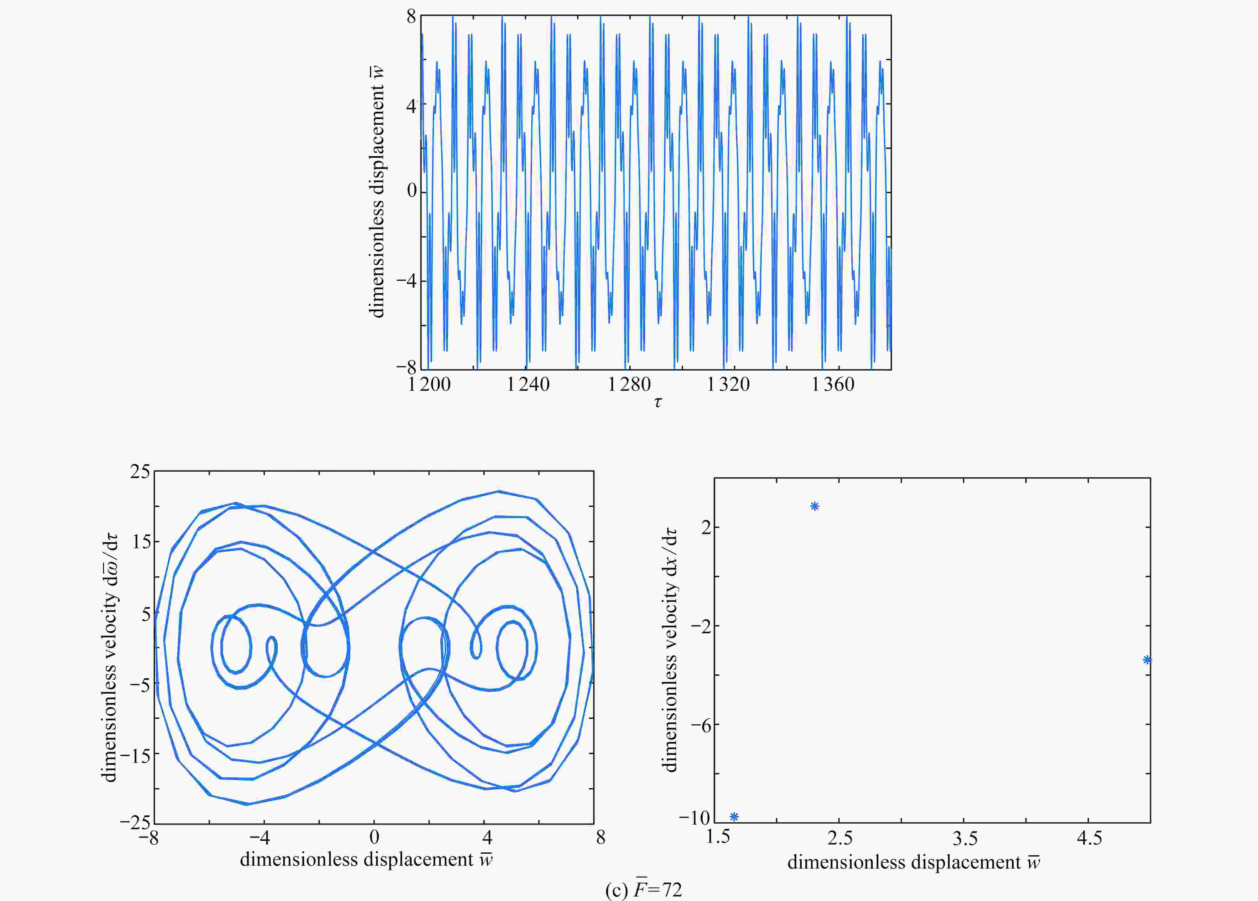 研究了受外载荷下圆锥角对功能梯度壳的非线性振动的影响。首先,根据Voigt模型,在圆锥壳的厚度方向上建立功能梯度材料属性模型。然后,考虑一阶剪切变形理论和von Kármán非线性,利用Hamilton原理推导了功能梯度圆锥壳的非线性运动方程。之后,应用Galerkin法对运动方程进行离散化处理,再根据Volmir假设将方程简化为单自由度的非线性微分方程。最后,采用谐波平衡法和Runge-Kutta法对方程进行求解,分析了功能梯度圆锥壳的幅频响应特性曲线,讨论了不同材料分布函数以及陶瓷体积分数指数对圆锥壳幅频响应的影响,描述了不同锥角下圆锥壳的分岔图和不同激励幅值下圆锥壳的时间历程和相图,进一步通过Poincaré图反映了圆锥壳运动状态。结果表明:功能梯度圆锥壳呈现“渐硬”弹簧非线性特性;锥角增大,功能梯度圆锥壳混沌运动的现象被抑制,不易产生运动不稳定性;激励幅值增大,功能梯度圆锥壳运动呈现周期到多周期再到混沌的过程。