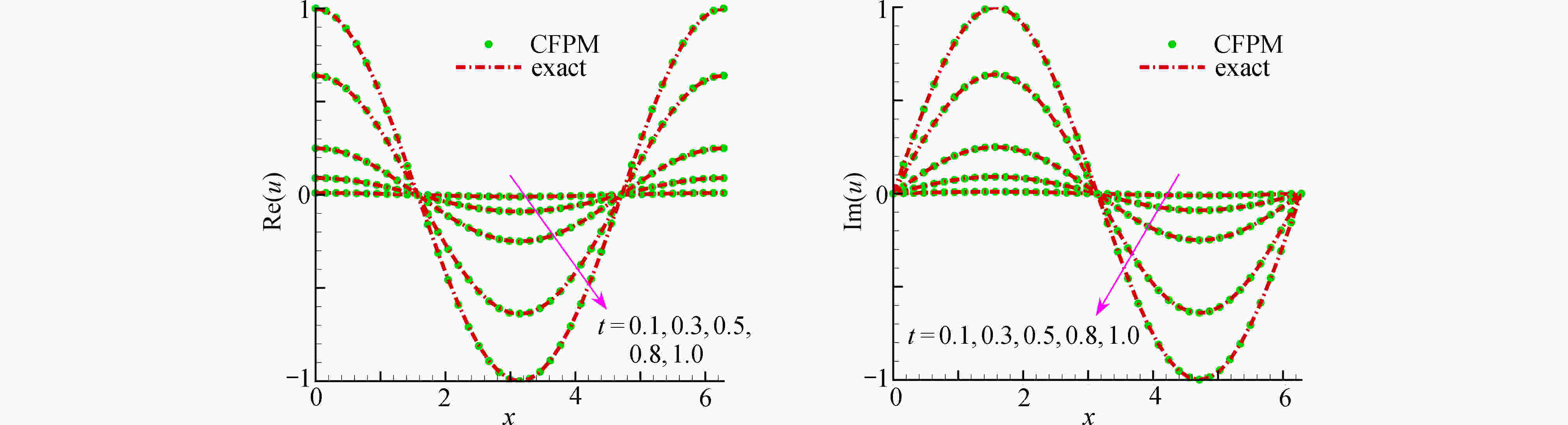 • 图  1  α=0.7,不同时刻下Re(u),Im(u)的解析解与数值解