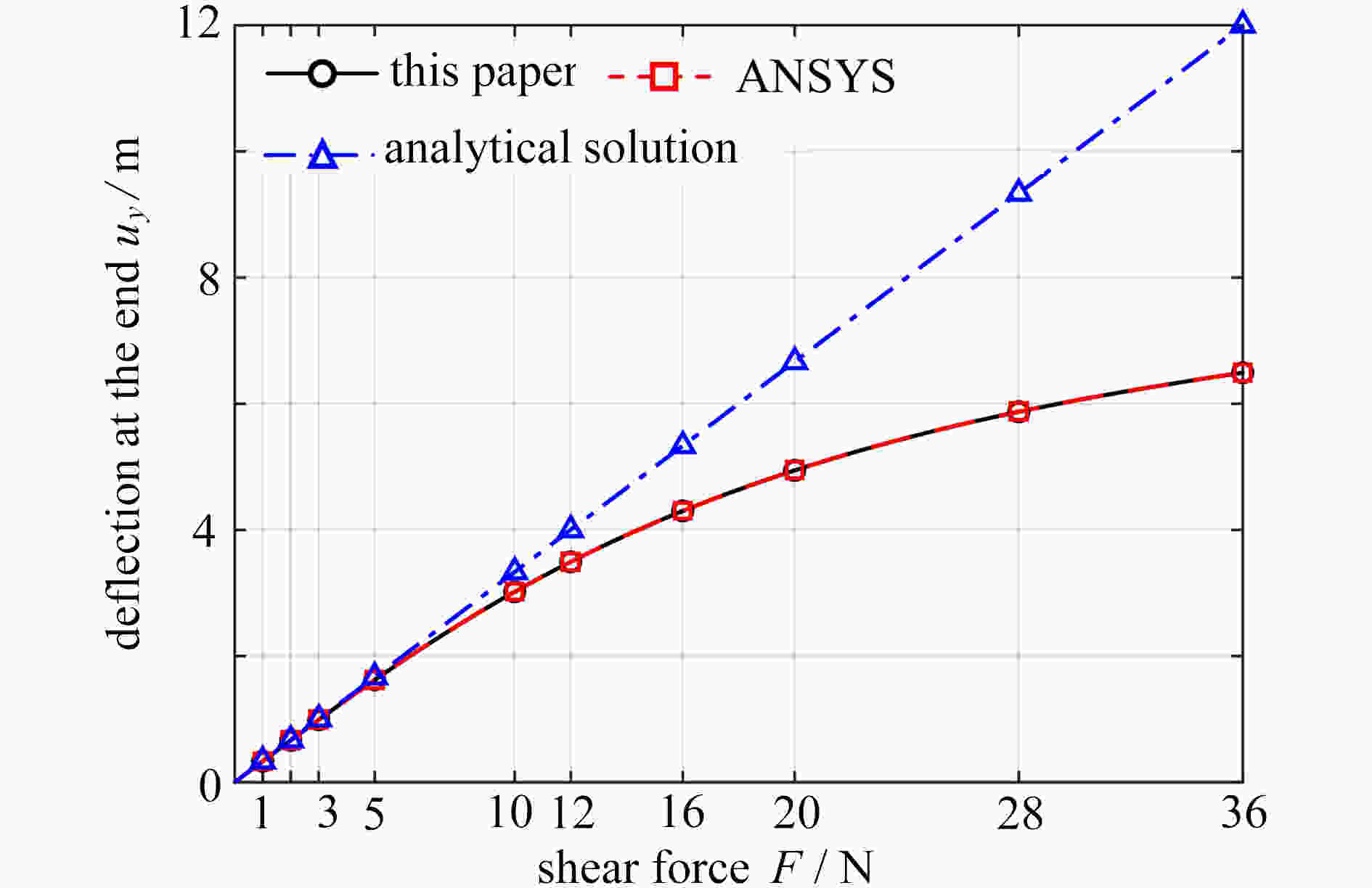 表  3  悬臂梁不同剪力作用下平衡状态时竖向位移
