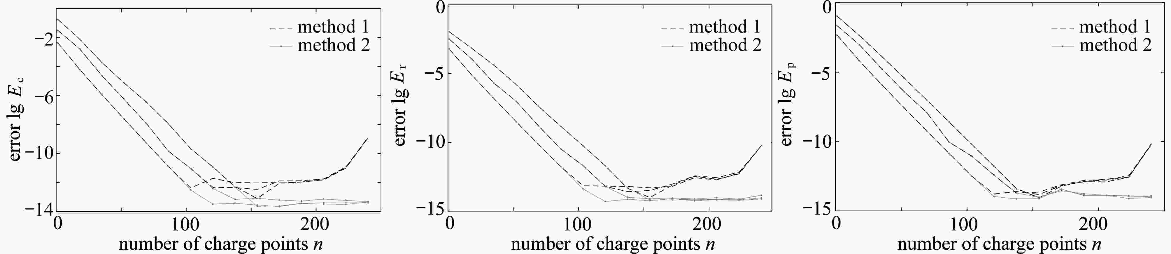 图  5  对应图3映射到三种狭缝的数值保角变换误差$ ({N_1} = 2{N_2} = 2{N_3} = 2n) $