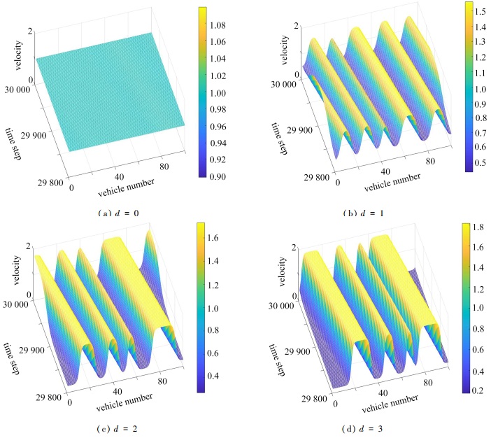 为了更好地探究自动驾驶车辆的跟驰特征和车流稳定性特性,在最优速度跟驰模型的基础上,结合自动驾驶车辆,通过车辆之间相互通讯共享收集到的交通信息,提出一种改进的离散时间时滞跟驰模型,该模型考虑了前方自动驾驶车辆与当前自动驾驶车辆的交互信息,前方多辆自动驾驶车辆的平均速度. 此外,还考虑了自时滞速度和车头间距控制策略. 通过控制理论方法和Lyapunov稳定性理论,建立了自动驾驶车流的稳定性条件. 进而, 在扰动影响下,通过数值模拟直观地展示了自动驾驶车流的时空演化模式,进一步验证了理论分析,揭示了自动驾驶车辆通过车辆之间的信息交互、前方多车辆平均速度、速度信息和车头间距信息传感过程中的时滞因素以及自时滞速度和车头间距控制策略对自动驾驶车流稳定性的影响. 结果表明:车辆之间的信息交互、前方多车辆平均速度的获取均可提高自动驾驶车流的稳定性;自时滞速度和车头间距控制策略可以有效地提高自动驾驶车流的稳定性,抑制交通拥堵;然而,速度信息和车头间距信息传感过程中的时滞因素不利于自动驾驶车流的稳定性.