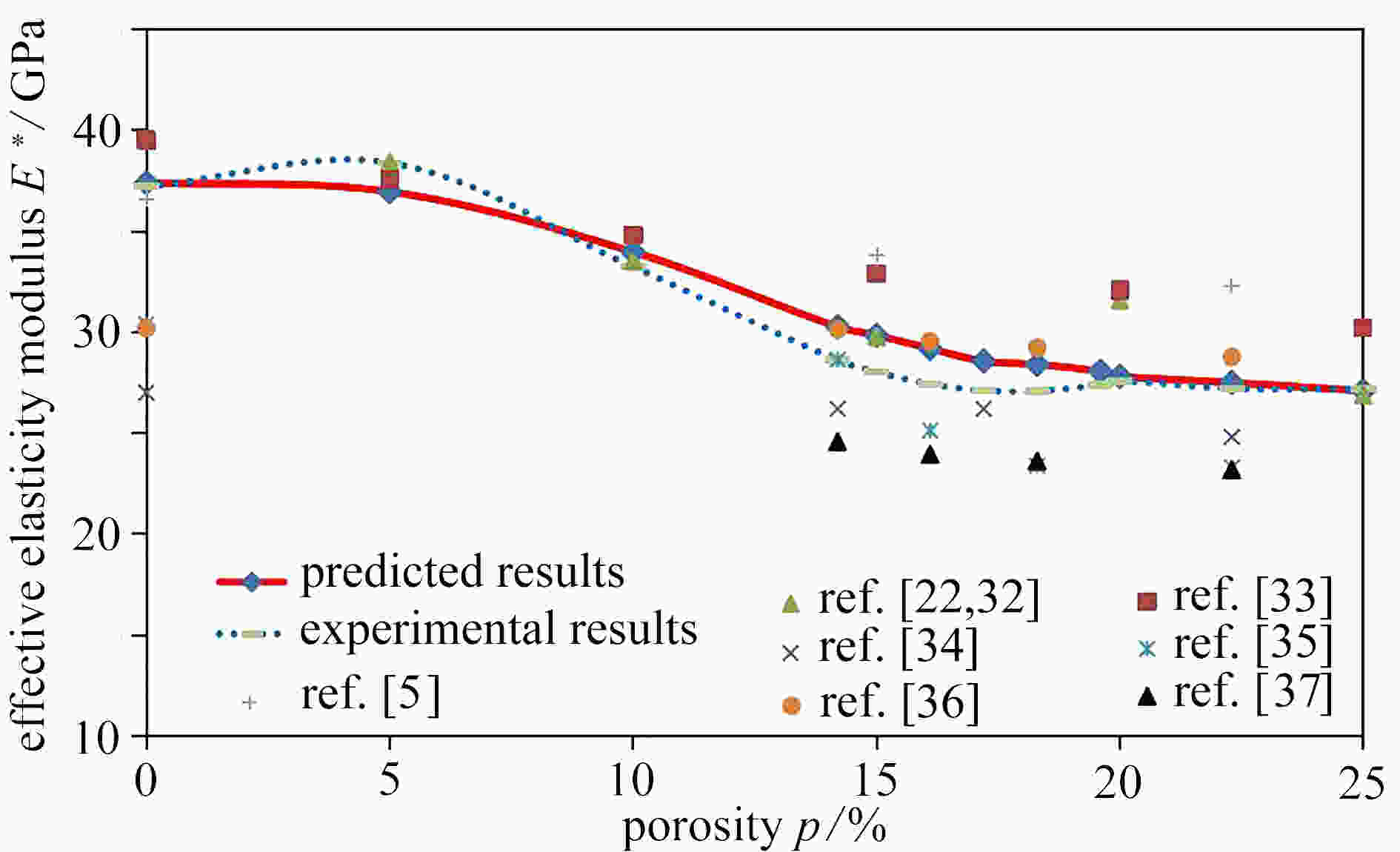 Figure  9.  Prediction results of the effective elastic modulus and experimental results from relevant literatures