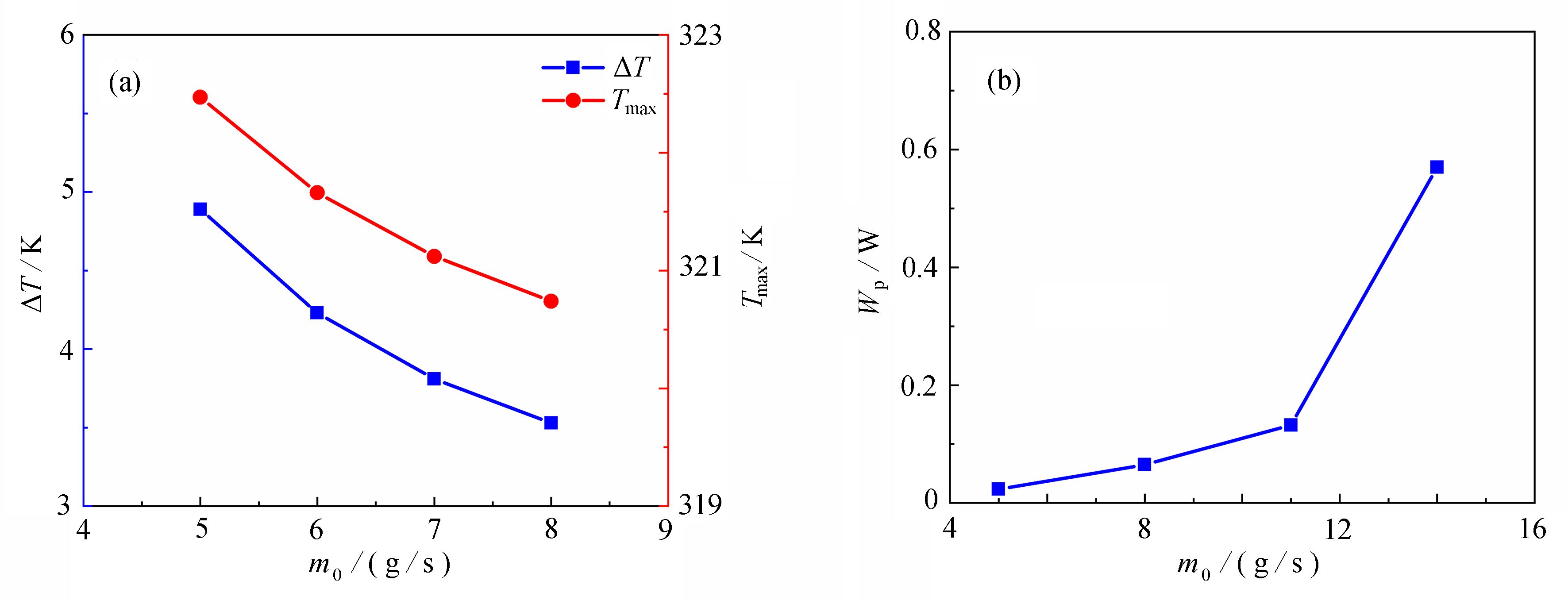 The battery thermal management system with phase change material coupled cold plates was investigated with the numerical simulation method. The results show that, the temperature and temperature difference of the battery pack decreases with the increase of the flow rates of the cold plate in the system, while the power consumption of the cold plate significantly increases, which leads to poor efficiency of the system. To improve the efficiency of the coupled thermal management system, an adjusting strategy was introduced to optimize the thickness distribution of phase change materials with the system volume fixed. The optimized results of typical cases show that, the optimal phase change material thickness distribution can be obtained by only 5 adjusting steps. Compared with the original system, the maximum temperature of the battery pack drops by 1.1 K and the temperature difference narrows down by 29% after the optimization. To achieve the same temperature difference in the battery pack, the power consumption of the optimized system lowers down by 64% compared with that of the original system.