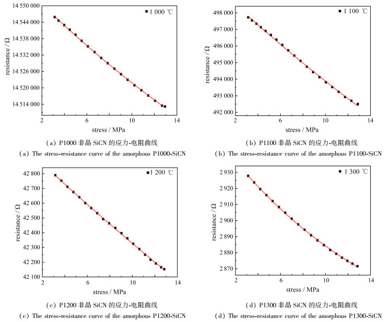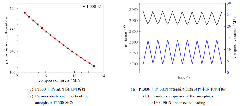 The digital twin technology, utilizing the high-precision virtual modeling and the real-time data acquisition, plays a crucial role in the design, operation, and maintenance of high-temperature components. Robust, sensitive and stable sensors are indispensable for precisely characterizing the operational status of these components. The dense amorphous SiCN ceramics was fabricated through liquid molding of the polysilazane (PSN1) precursor, and the pyrolysis temperature effects on the microstructural evolution, the micro-nano mechanical properties and the piezoresistive response were investigated. The results demonstrate that, with the increase of the pyrolysis temperature, the amorphous SiCN density and the structural free carbon phase degree of order will gradually rise. Within the pyrolysis temperature range of 1 000~1 200 ℃, the density increase as the dominant factor markedly augments the elastic modulus, the hardness, and the creep index. At a temperature up to 1 300 ℃, the free carbon structure orderliness as the dominant factor enhances the deformation ability of the amorphous SiCN, resulting in decreases of the elastic modulus, the hardness and the creep index. Furthermore, the orderliness of the free carbon conducting phase significantly promotes the electrical conductivity of the amorphous SiCN. The amorphous SiCN subjected to pyrolysis at 1 300 ℃ exhibits the highest piezoresistivity coefficient (310~416), and the corresponding electrical resistance value shows a sharp drop trend followed by a gradual flattening with the stress. The amorphous SiCN still exhibits excellent piezoresistive performances and stability at a high temperature up to 900 ℃, promising a potential application in the field of high-temperature pressure sensors.